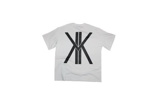 White T-shirt, with black lettering and black logo